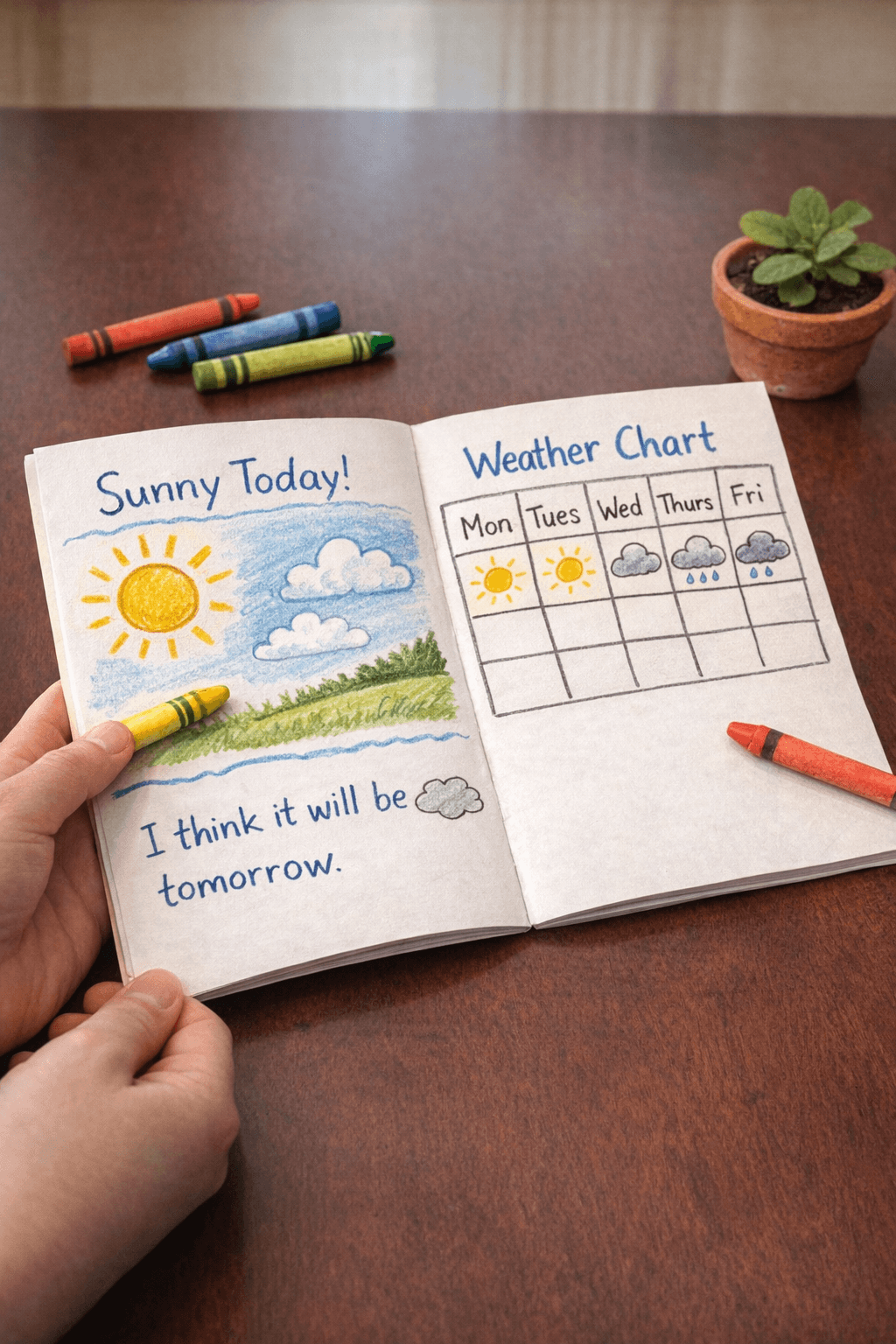 And unlike many learning activities, a weather journal requires almost nothing. A notebook, some crayons, and one quiet moment each morning.